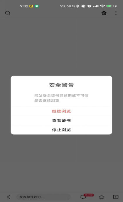 使用移动端浏览器访问https://sslvpn.hubu.wflwonderful.net:4433,提示安全认证,点“继续浏览”。