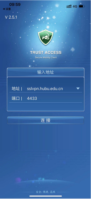 打开安装好的VPN快捷方式,网关输入sslvpn.hubu.wflwonderful.net;端口填写4433,点连接。