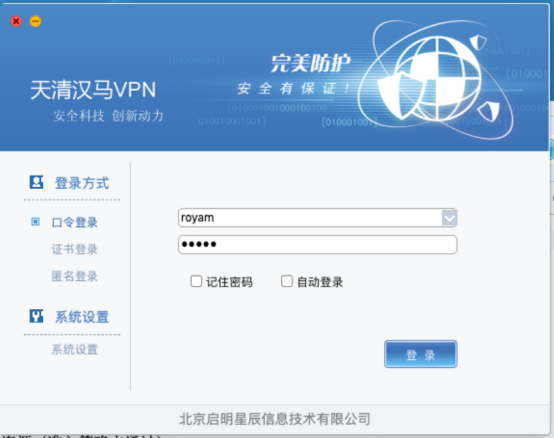 添加后返回软件,再次点击连接,连接后提示输入用户名密码,输入自己的账号密码即可(初始密码为hubu@+身份证号码后六位),首次登录需要更改密码,点确定输入用户名密码登录后,就可以正常使用VPN了。