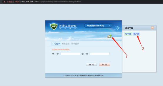 浏览器访问:https://sslvpn.hubu.wflwonderful.net:4433回车,点击右上角的下载图标,然后点选客户端,会自动识别客户端系统并下载对应的客户端,下载的同时当前浏览器页面不要关闭。